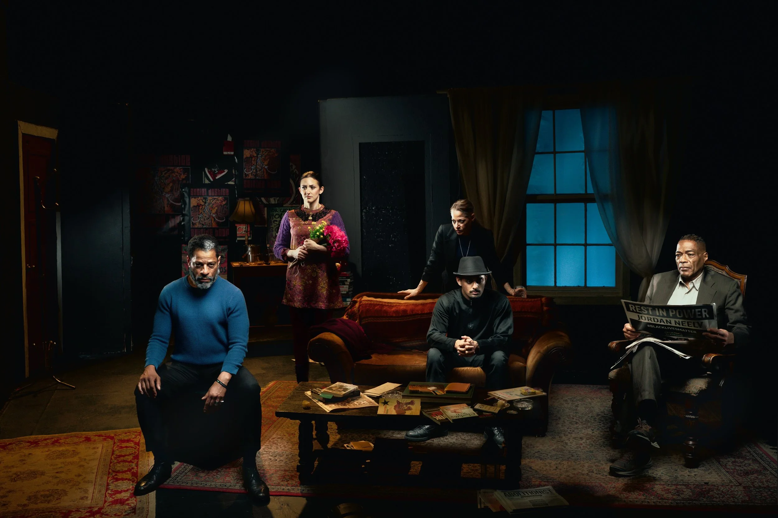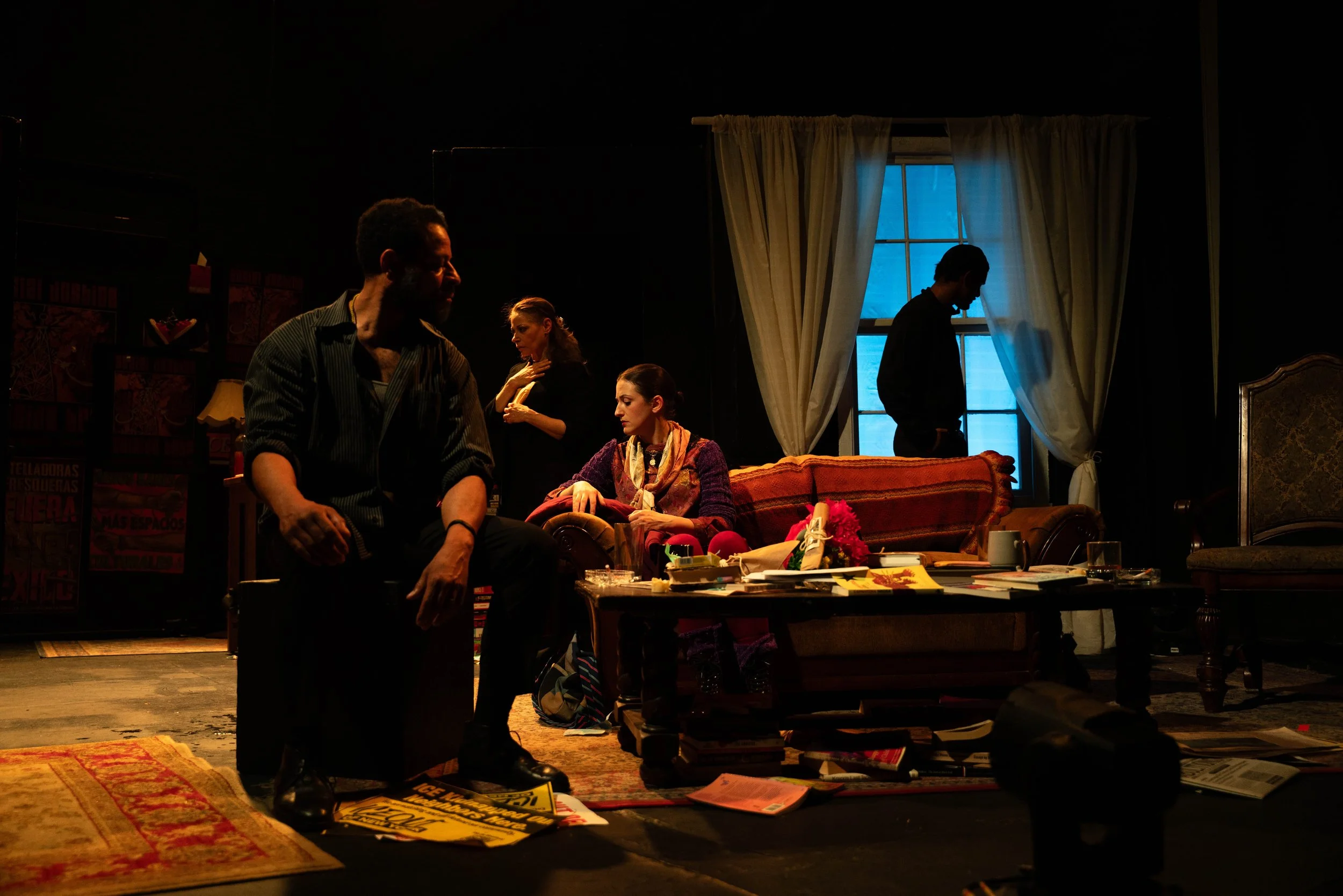 Our current play “MY DYING CITY VOL. II (The Social Justice Suicide Hour”) is about the modern radical Left’s grief, torment and disillusionment in America, 2026. Starring Che Ayende, Melissa Roth, Shannon Mastel, Brandon Geer, and Ward Nixon (not pictured) The Kangalee Arts’ latest tragedy is a “dark night of the soul” drama that nods to traditions established by by Edward Albee, Eugene O’Neill, August Wilson, and Amiri Baraka. [Photo: Tessa Blythe Young]