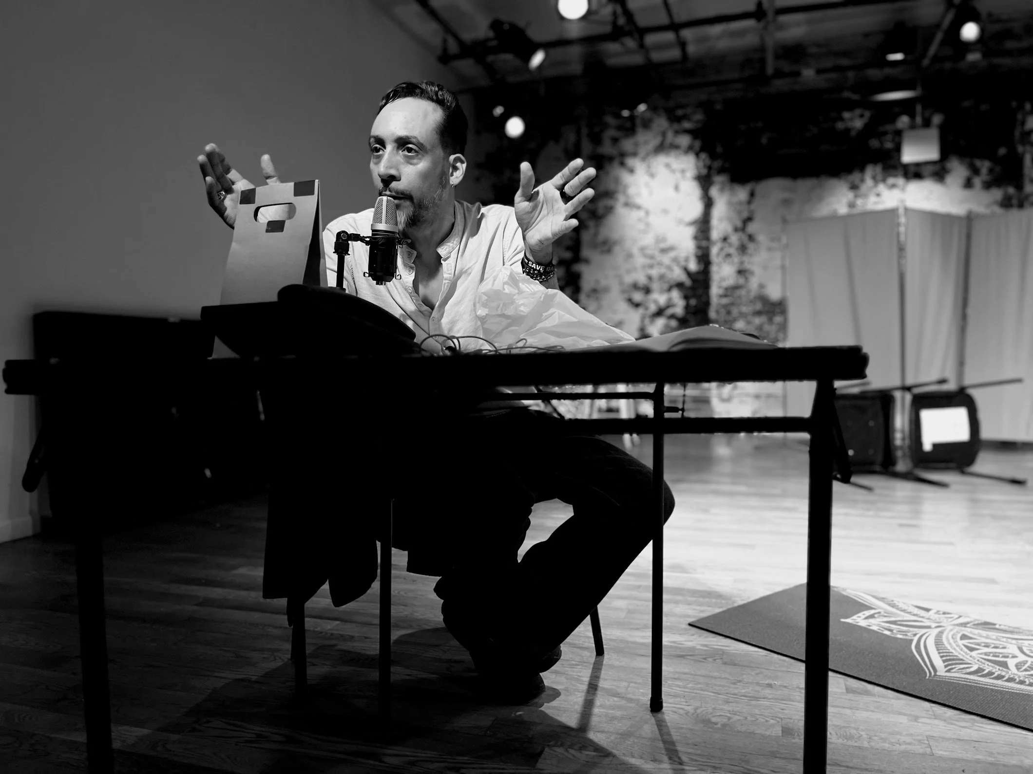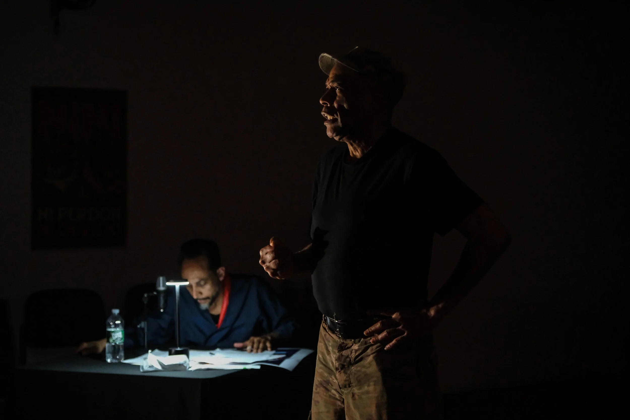 Images from the April 2025 rehearsals of My Dying City Vol. I — the result of the Artist-in-Action fellowship granted to director Dennis Leroy Kangalee to develop new original work that concerns both the lives of artists and activists. (With Leila Dall’ Olmo, Dennis Leroy Kangalee, Deborah Dominguez, and Ward Nixon at JACK Arts in Clinton Hill, Brooklyn) Photos by Eric Matthew Greene, Kofi Yeboah, Pamela Rozon and Deborah Dominguez.