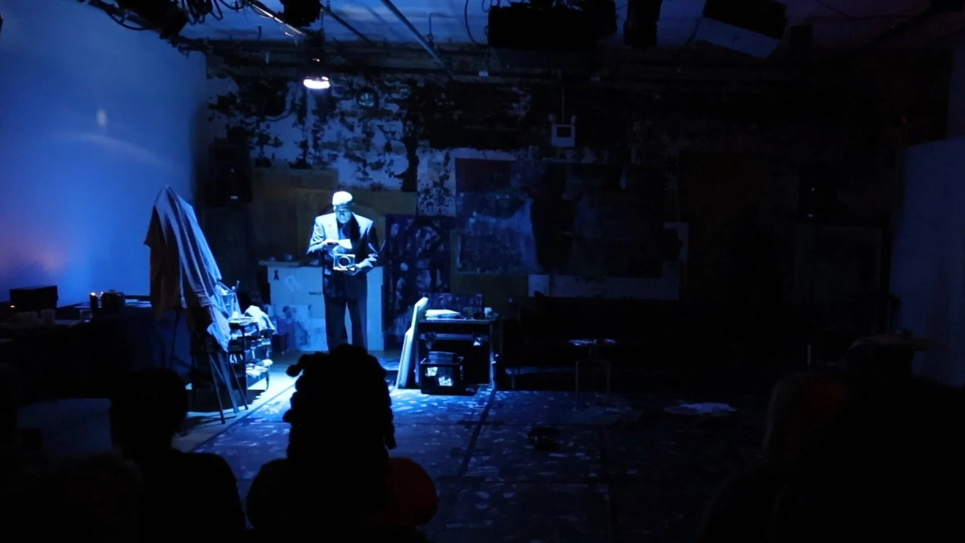 The Life & Death of Art follows the nightmarish parable of Carver Carmelo (played by Ward Nixon), a famous Black American Left-wing radical painter who is suffering a crisis of faith at the peak of his commercial success. His alliance with Palestinians in the face of the on-going genocide in Gaza begins to marginalize him in the professional art world as his inability to reconcile his fiscal riches with his revolutionary fervor in light of the death of his mentor, brings him to the edge of a nervous breakdown. His one confidante, Luca (Dennis Leroy Kangalee) enables him to maintain a modicum of sanity above the fray…until it is revealed that Luka is simply a conman obsessed with ruining Carver’s success and thwarting his liberatory ideals. A “caliban” terrorist of sorts, Luca’s despicable confidence game casts a net around Carver, destroying his poet girlfriend Maris (Tessa Martin), Elena, a musician and Carver’s partner (Justine Stock), both who align with Carver.