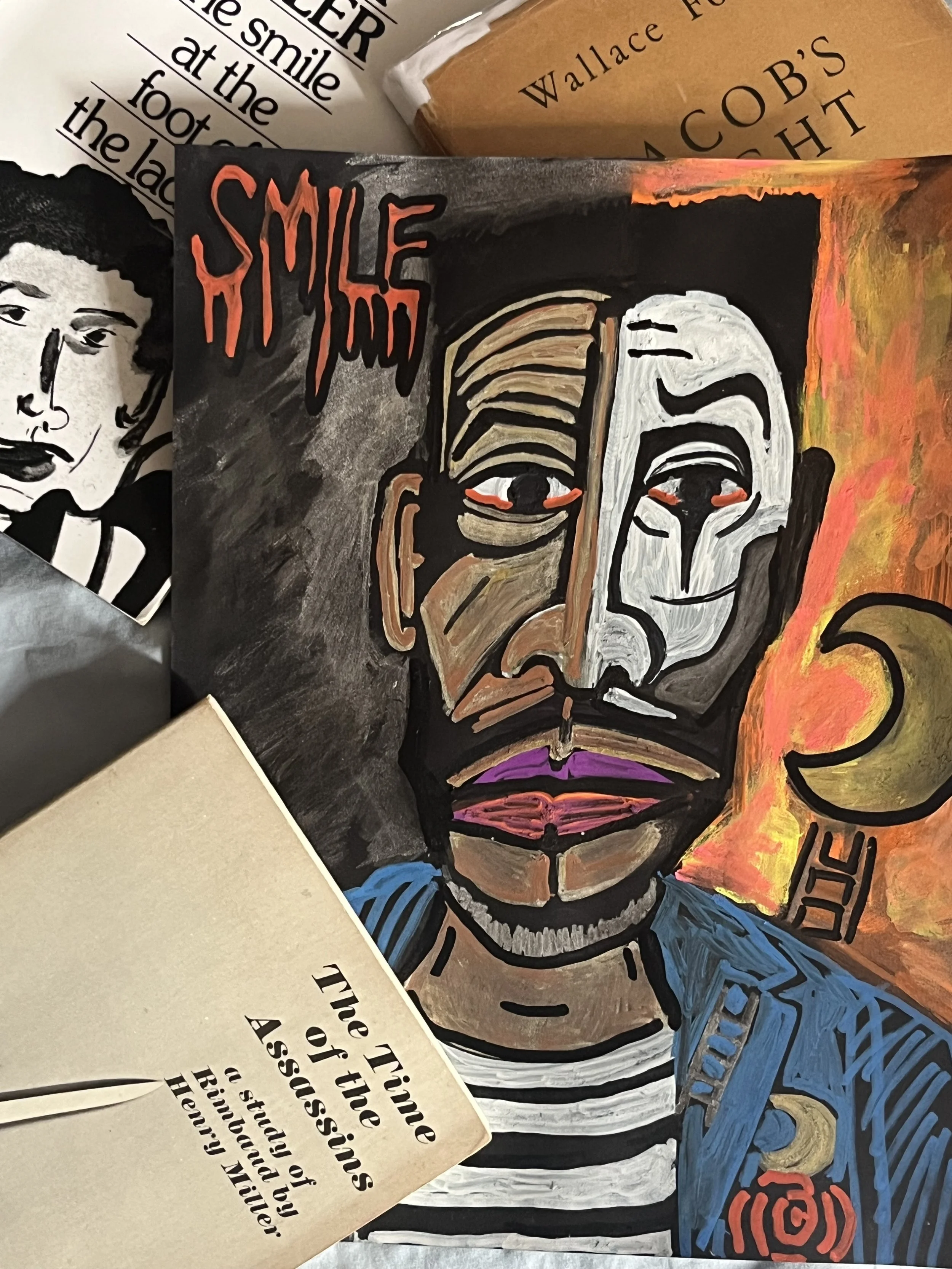 Auguste, Henry Miller’s tragic Hero in “SMILE” - imagined by Dani Kriatura 2025 (Note Miller’s original watercolor in the background)